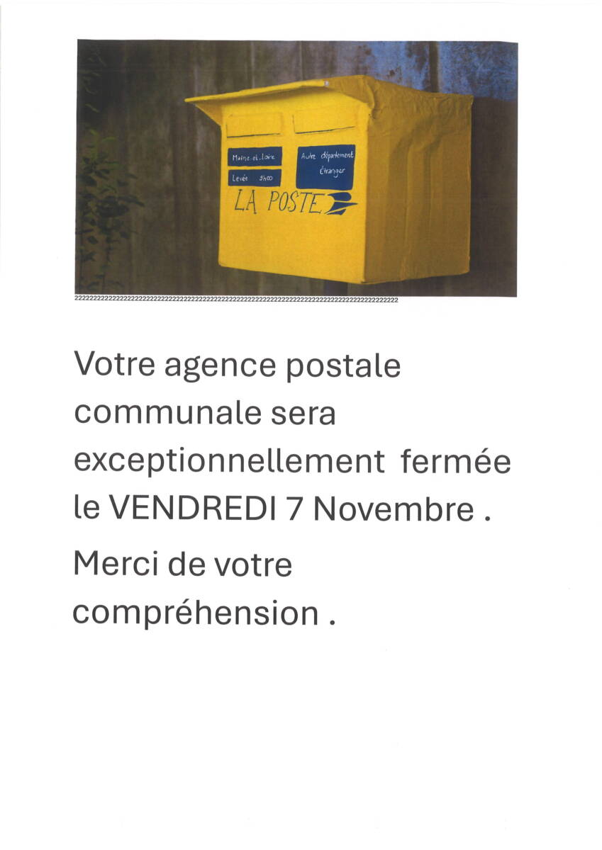 Fermeture exceptionnelle de l’agence postale communale
