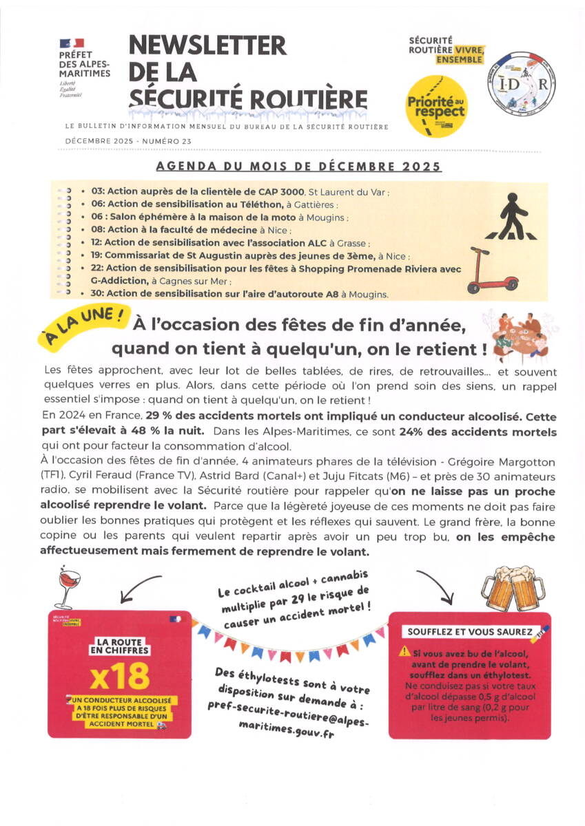 NEWLETTER DE LA SECURITE ROUTIERE